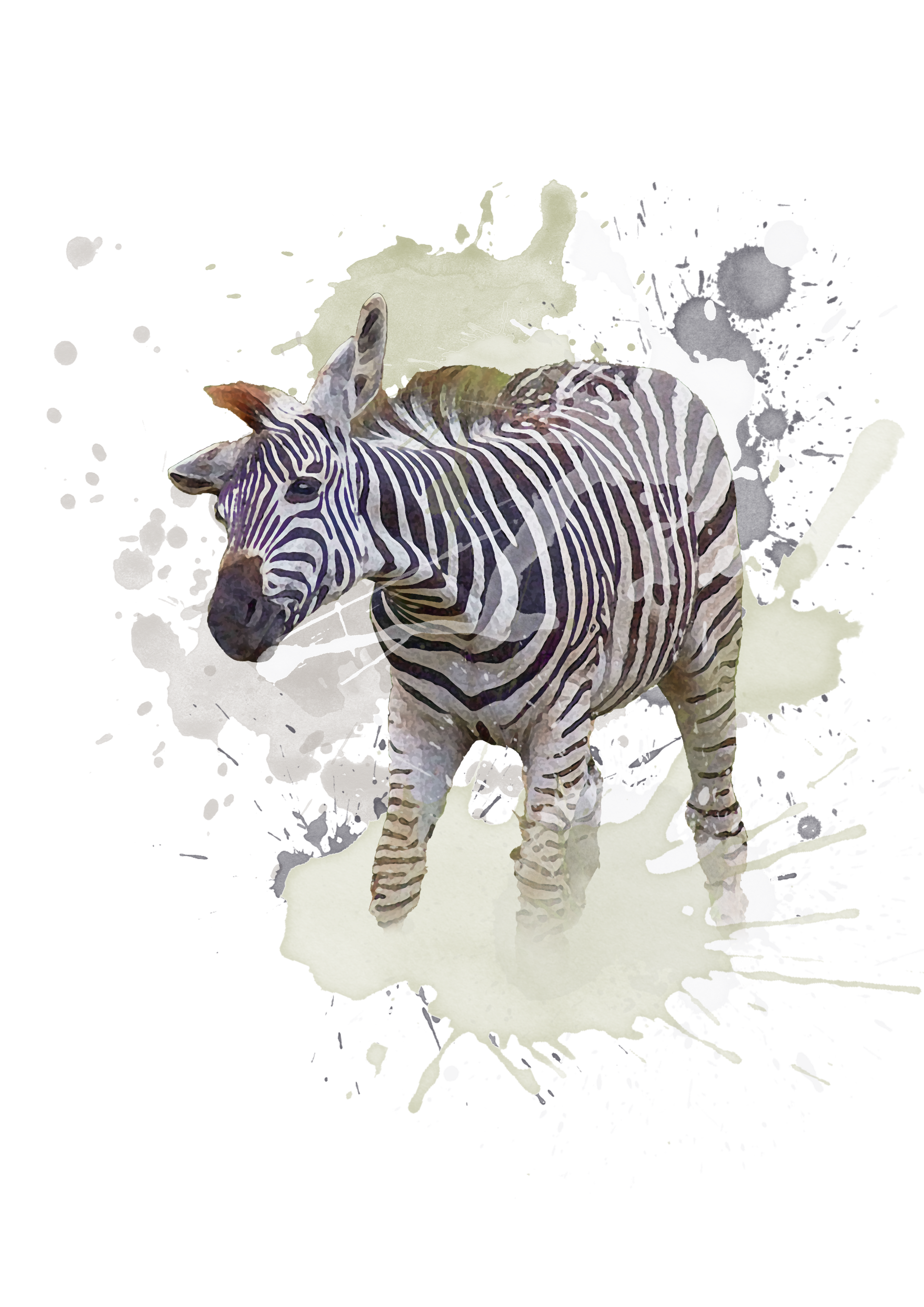 Burchell's Zebra Foal - Digital Watercolour Print