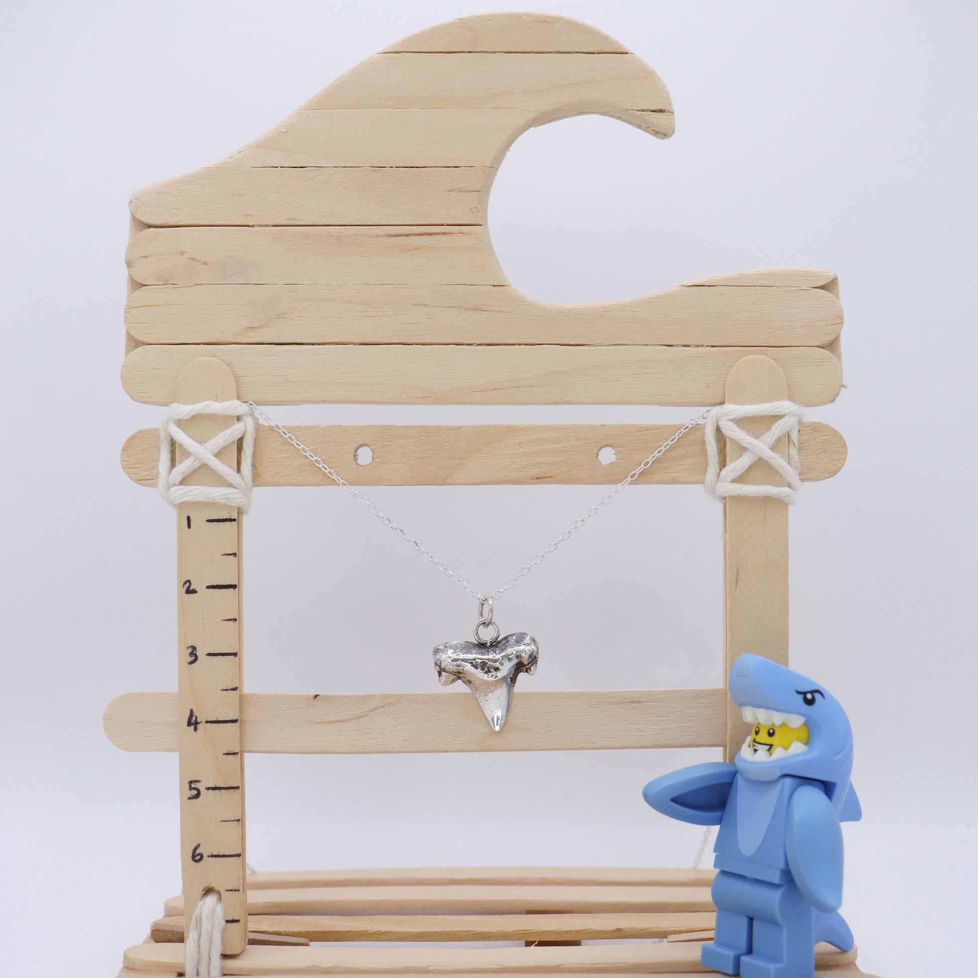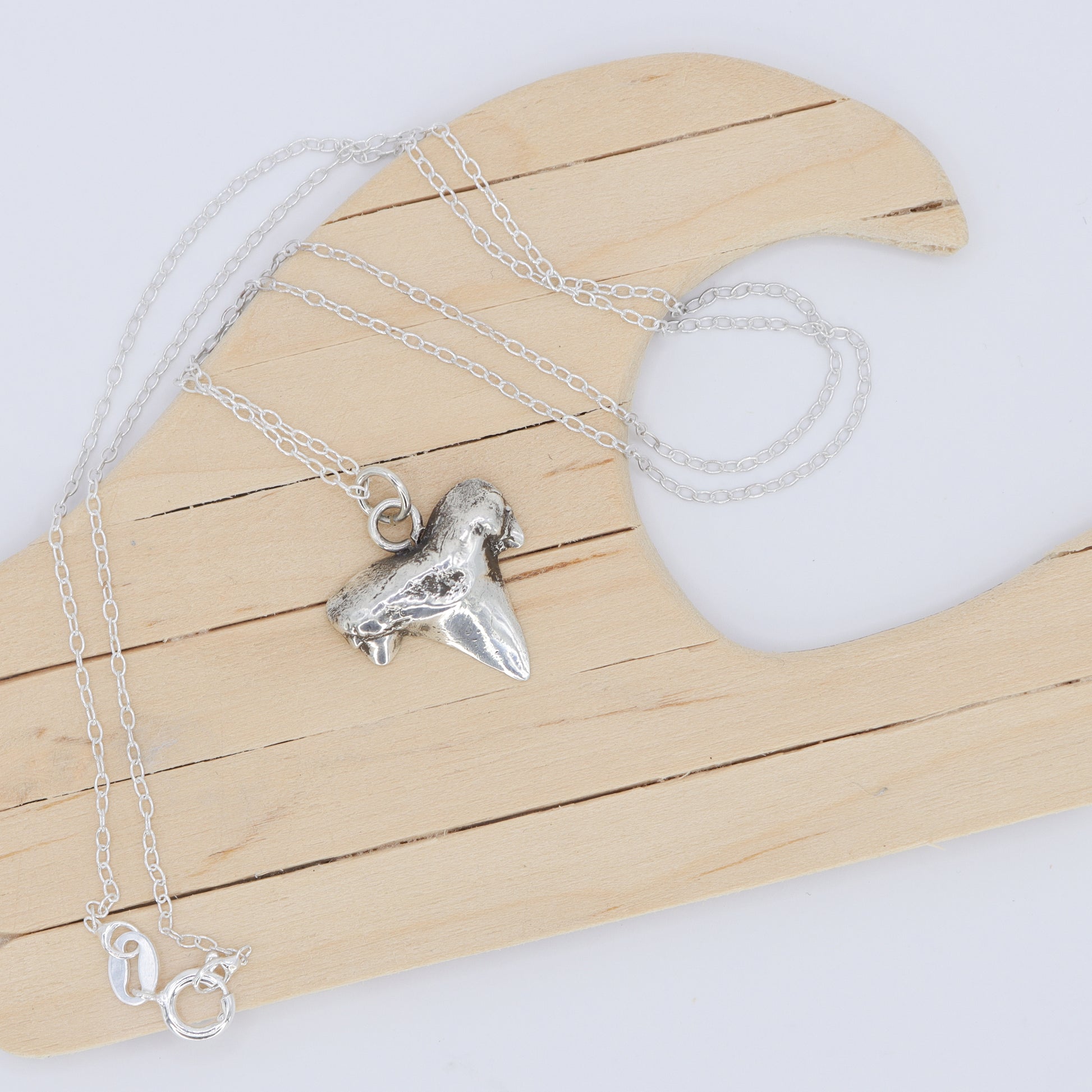 Each shark tooth is attached to an 18-inch Sterling Silver chain.